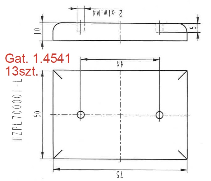 Detale z blachy 10 mm, gatunek 1.4541. Proszę o przesłanie ofert na wykonanie 13 sztuk.